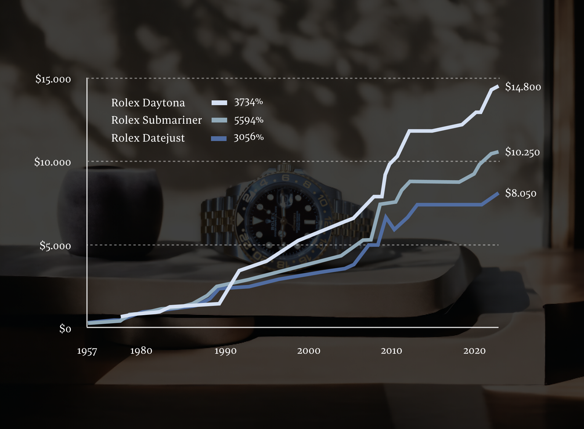 The prices of top models from Rolex have been increasing for the past 67 years. Furthermore, the Chrono24 price index of Patek Philippe, Audemars Piguet & Rolex have increased in the past 5 years