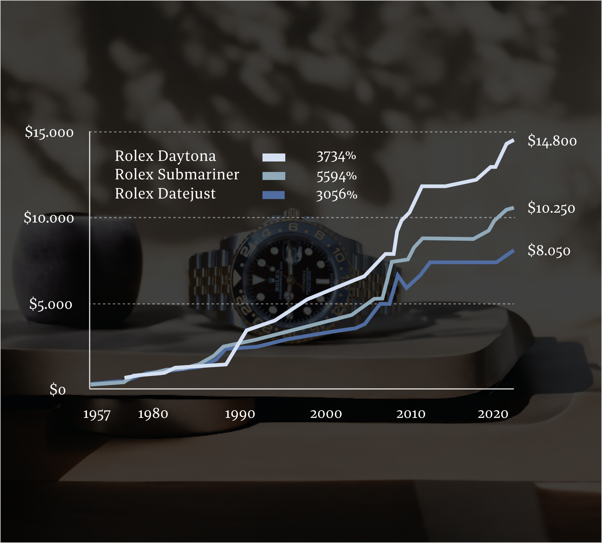 The prices of top models from Rolex have been increasing for the past 67 years.