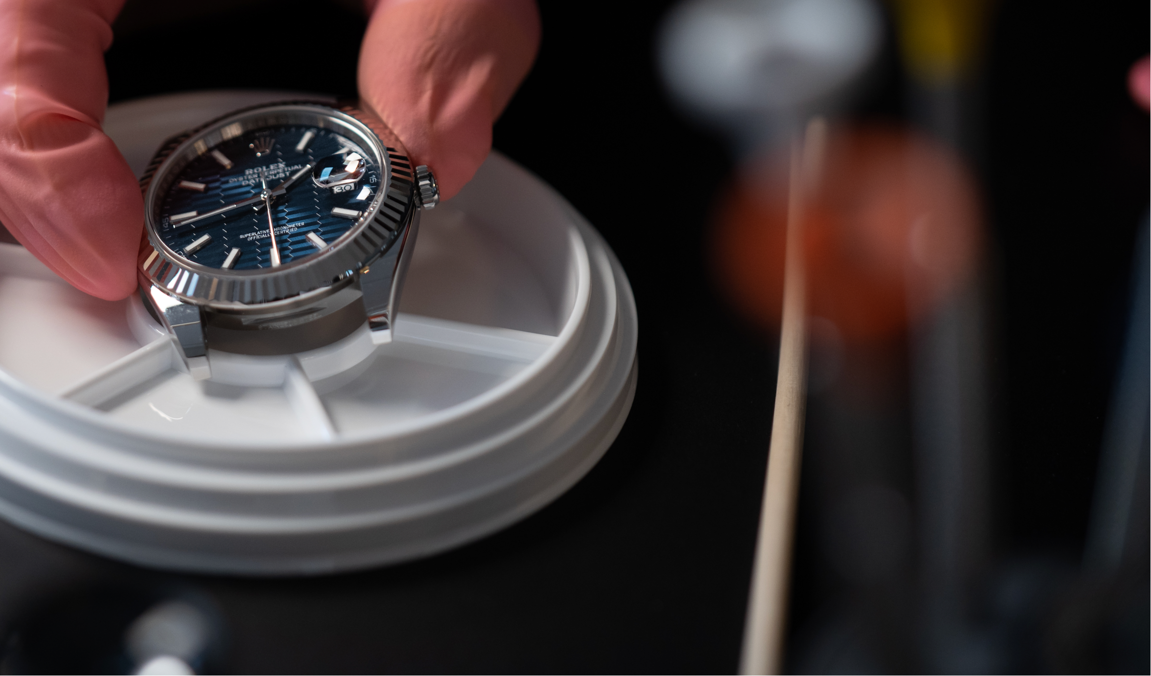 "Servicing your watch isn't just about preserving its precision; it's about honoring its legacy of excellence. Entrust your timepiece to a watchmaker to ensure its enduring performance and timeless elegance. We offer a comprehensive range of services, from battery replacement and bracelet repair to full servicing"